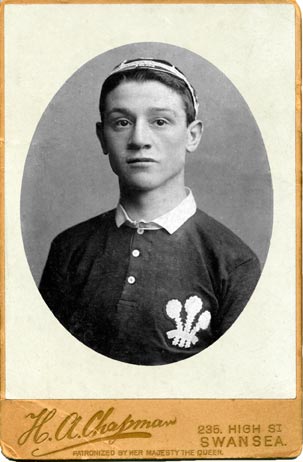 The club are fortunate to possess two of his international jerseys as well as an old original photograph by the famous Swansea photographer H. A. Chapman. Chapman’s old premises in Swansea High Street can still be picked out, with his name in bold lettering on the first floor. Look out for it when passing. The portrait of Dicky Owen, taken in 1901, the year he won his first Welsh cap, has now been digitally restored to its former glory and a copy, along with his jerseys, will go on display at the club when rugby activity resumes, as part of a ‘Golden Era’ display.