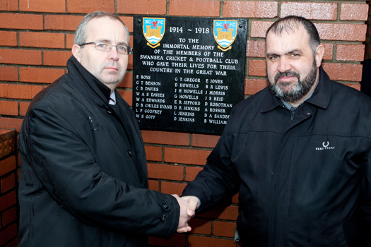 Above: the new plaque, donated by R J Davies Funeral Directors of Dillwyn St. Swansea.