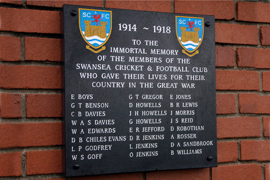 This page is dedicated to the twenty four named players who appear on the plaque in memory of the Swansea Cricket & Football Club’s players who gave their lives during the Great War of 1914-18 and to the other football players of Swansea who have no plaque to help us remember who they were.