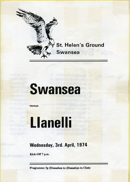 Swansea 23 – 4 Llanelli. St Helen’s 3rd April 1974