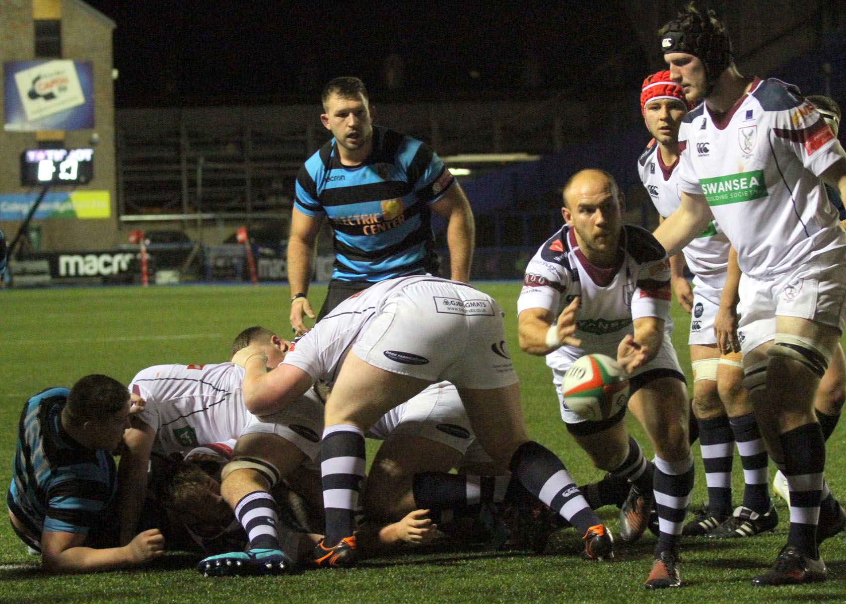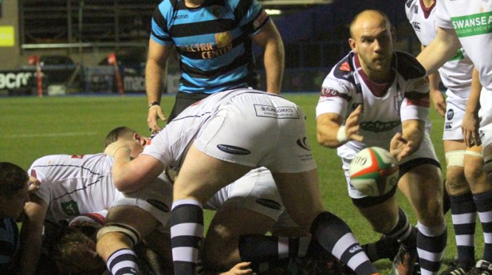 Cardiff strayed offside in midfield and Steffen Williams turned down a kickable penalty to chip to the corner. The Swansea pack mauled forward but were held up over the line.