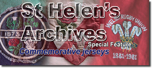 This was the very first of a series of ‘Commemorative Matches’ that were so popular among rugby supporters. The examples below show how this tradition was enthusiastically carried forward. This is the jersey worn by Swansea Wales and ‘Lions’ wing Rowe Harding on 1st November 1923 in the historic “Rugby Centenary Match” played on ‘The Close’ at Rugby School, to celebrate 100 years since William Webb Ellis is said to have first picked up the ball and ran with it in an internal school game there in 1823. The true extent to which his action affected the development of the modern game of rugby football is debatable, running with the ball at the school being an uncommon occurrence until the 1830s and not regularly practiced until 1841. But the Centenary of Webb Ellis’s transgression was a very important beacon to the RFU, especially following the departure of many of the northern clubs in 1895. The Swansea club had the distinction of providing TWO players for the combined England/Wales team that beat an Ireland/Scotland team by 21 points to 16. The other Swansea man was a forward: Welsh cap Gwilym Michael. Rowe Harding gifted this rare historic jersey to Swansea RFC after the match. Rowe Harding played 17 times for Wales and toured with the ‘British Isles’ to South Africa in 1924. He captained Swansea in 1928-29.