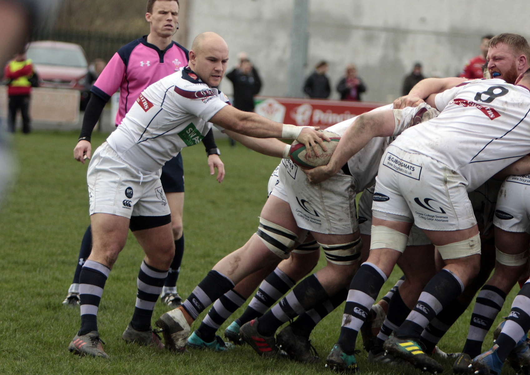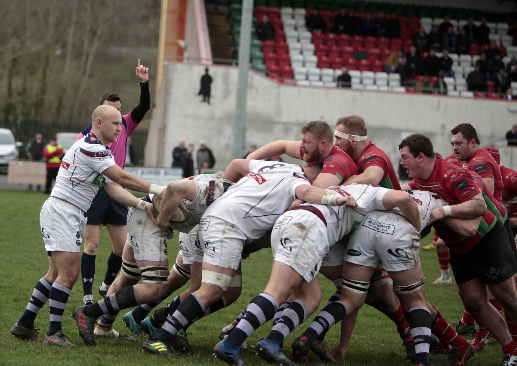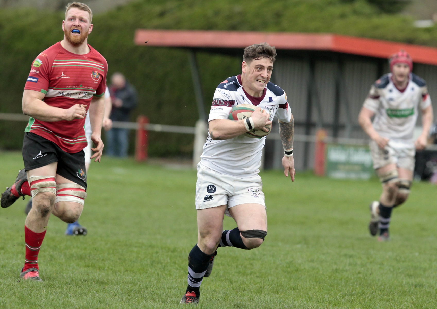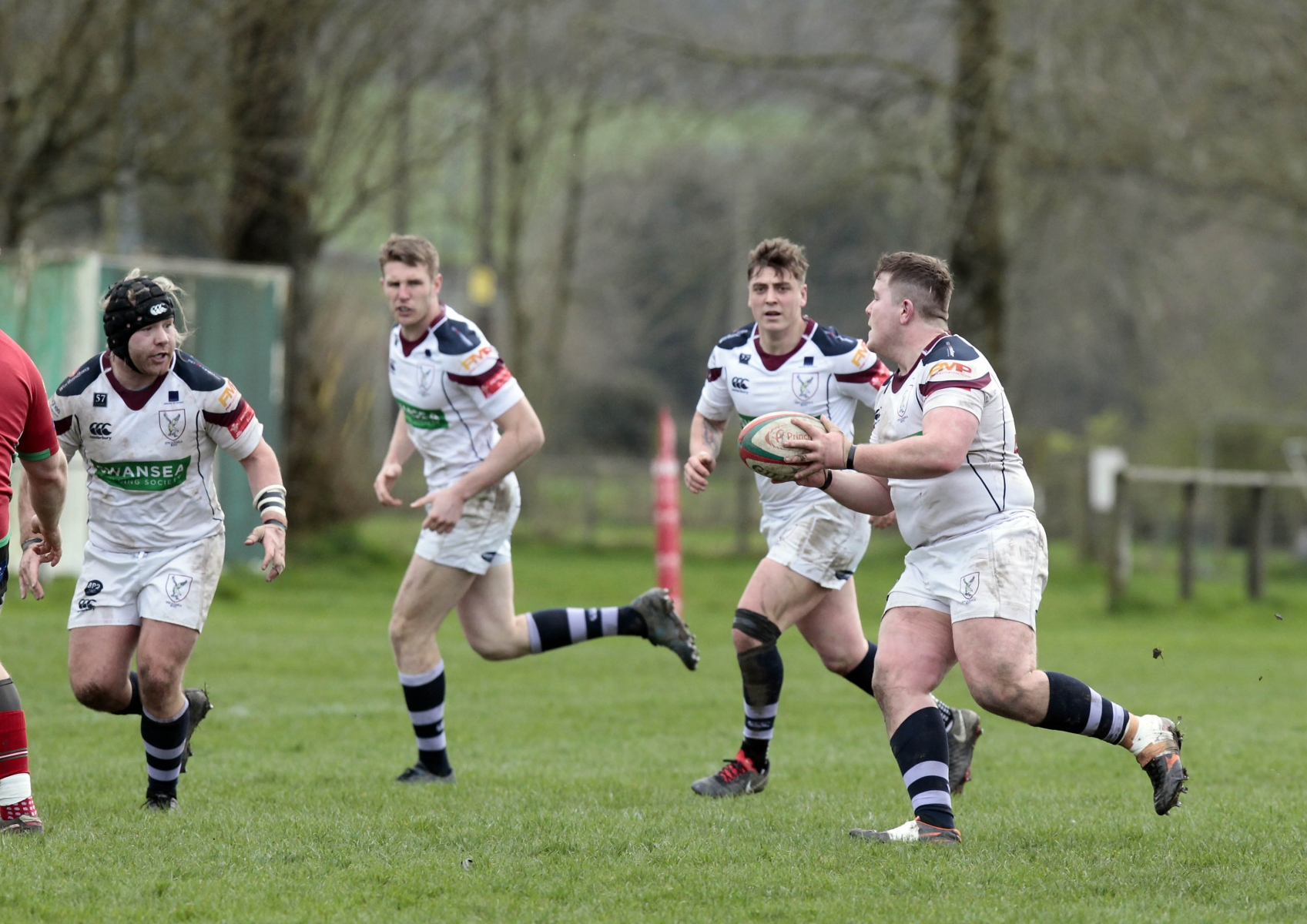 Morris burst through a tackle and found Steffen Williams, who sprinted up to the twenty-two, before flanker Stuart Worrall made a try saving tackle. Play was brought back for a Swansea penalty though and Steffen Williams chipped to the corner.