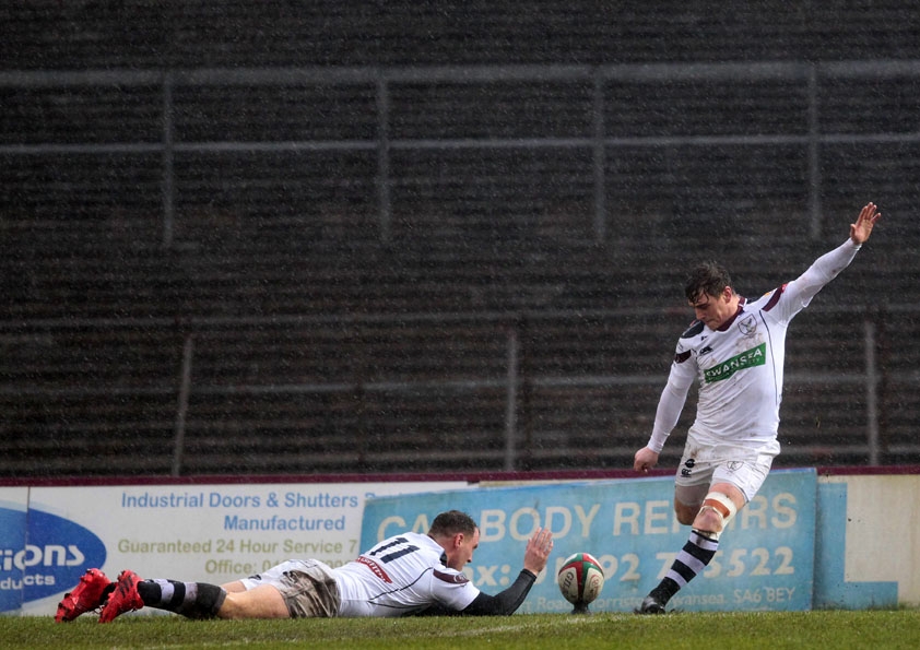 Sensing a huge advantage up front, the visitors opted for a scrum five under the posts, but a crooked feed gave Swansea some much needed respite.