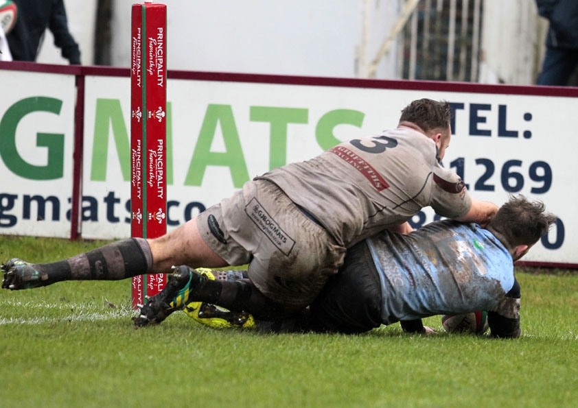 A superb chip through by winger Nathan Trowbridge saw Luke Griffiths sprint upfield, but the Bargoed defence got back to defend with replacement scrum half James Leadbeater clearing to touch.