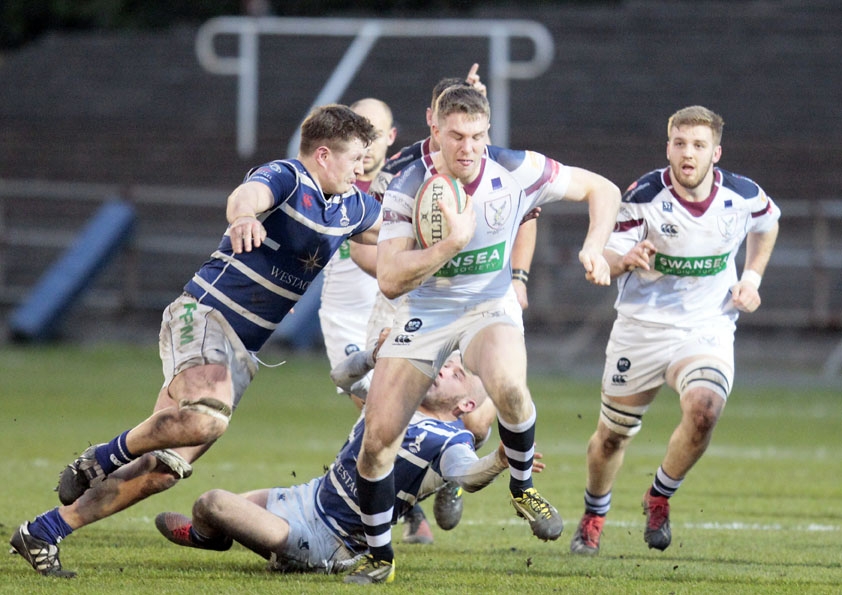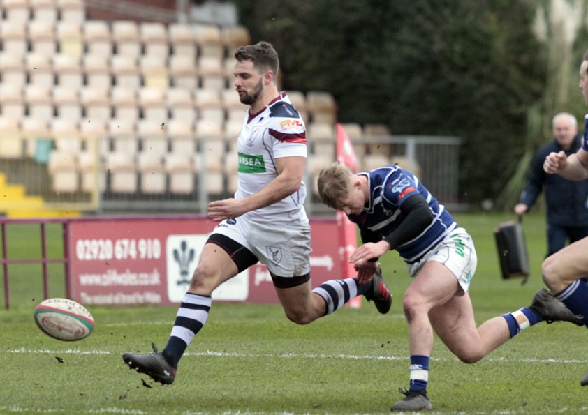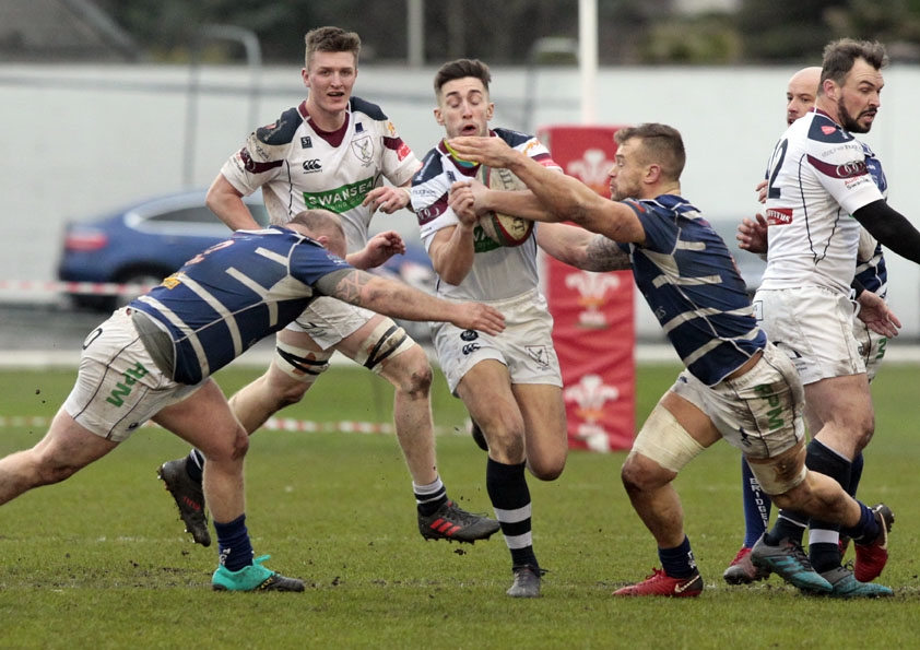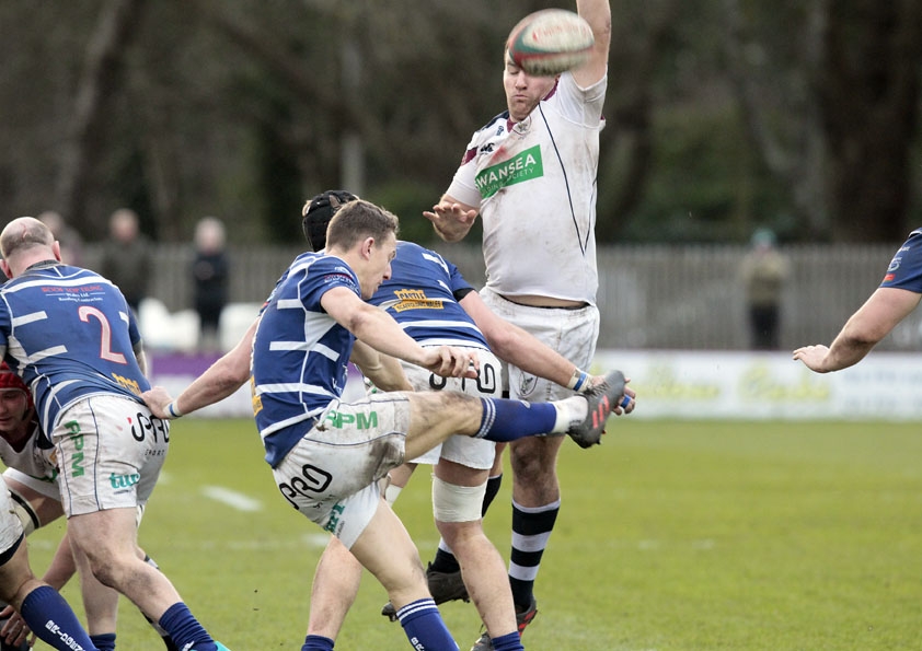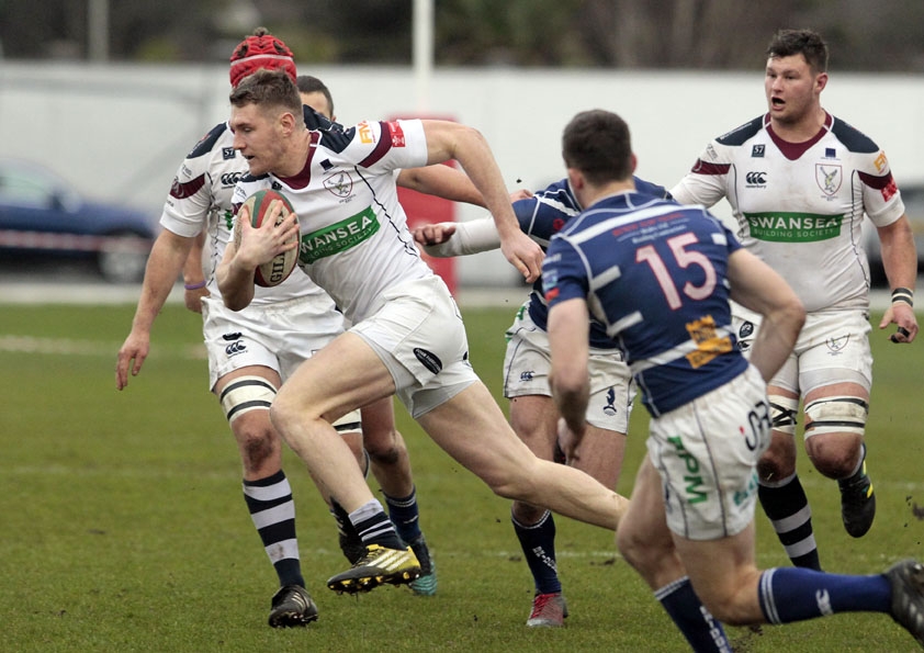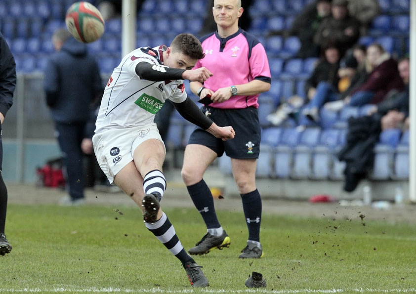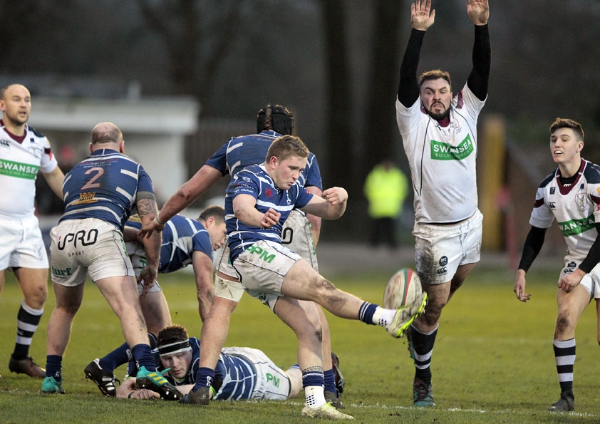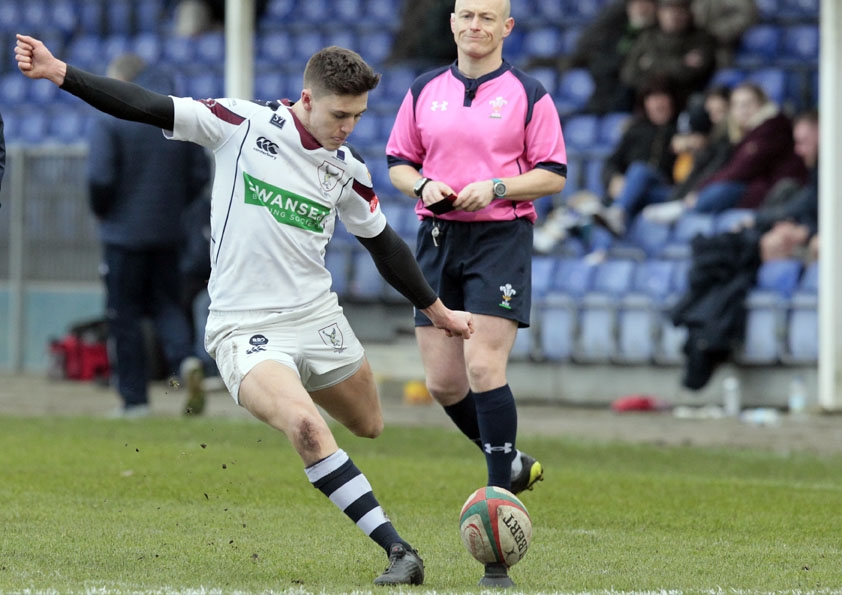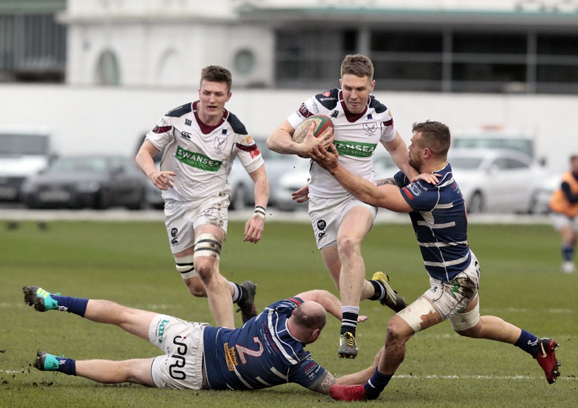 A powerful scrum by the Swansea pack earned a penalty and fly half Josh Thomas chipped to the corner. Prop Rhodri Apsee conceded another penalty and this time the Whites opted for a close range scrum, but number eight Jon Fox dropped a simple pass.
