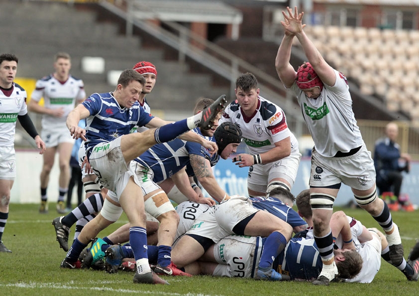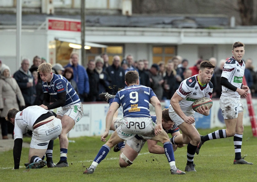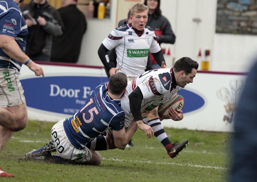 On the stroke of half time fly half Jamie Murphy was tackled off the ball on half way as he chased down a grubber kick and Cai Evans kicked his side into the lead.