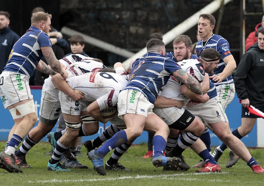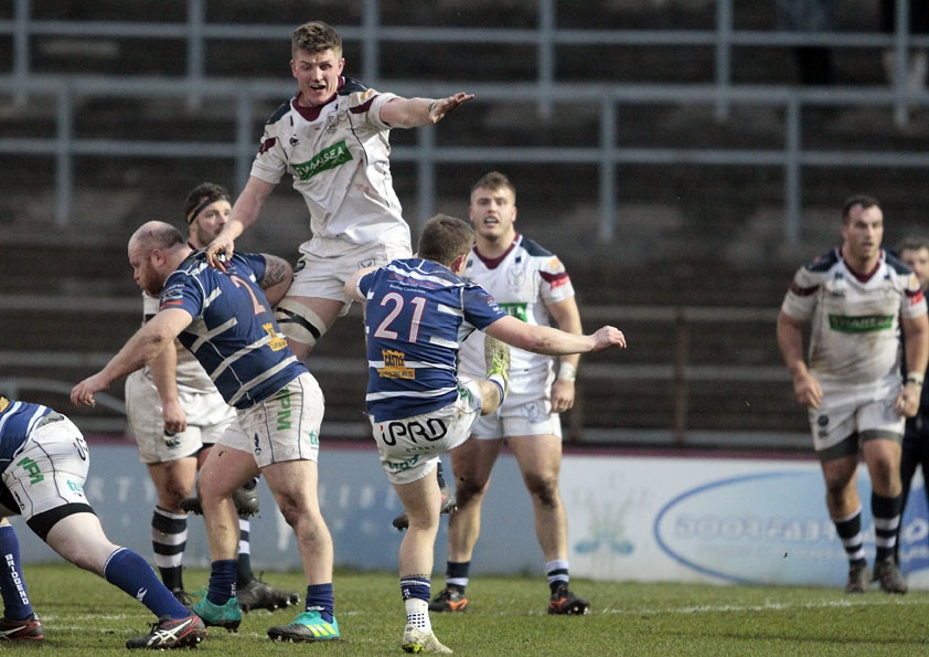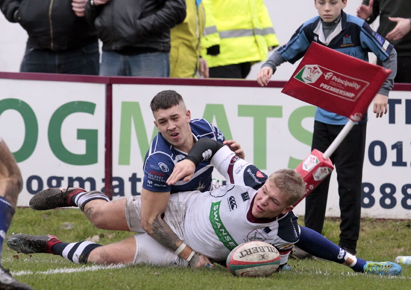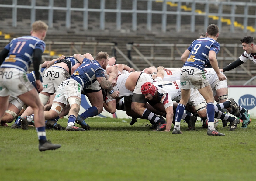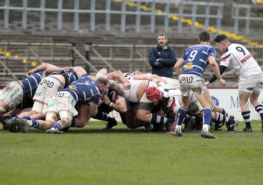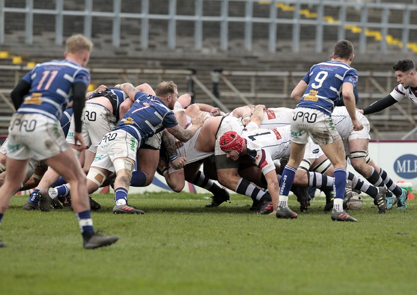 Josh Thomas found touch deep inside the Bridgend twenty-two after the home pack drove their counterparts off a scrum. Lock Jay Williams and prop Greg Cunniffe were stopped in their tracks on the line, before Cambriani was tackled into touch a metre short of the line.