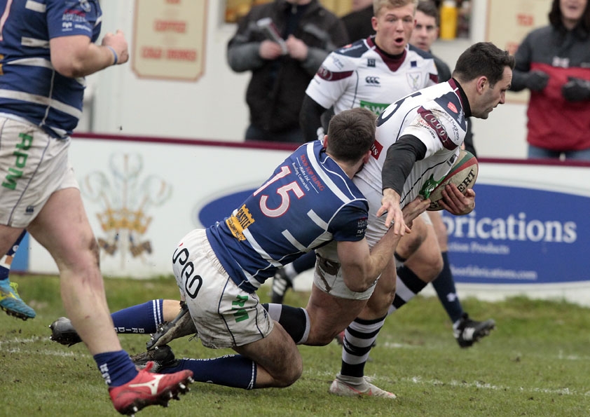Centre J Rhys Williams drove forward to set up a Whites attack and replacement centre Gareth Rees was brought down from an offside position. Josh Thomas chipped to the corner, but J Rhys Williams failed to take a crash ball near the line.