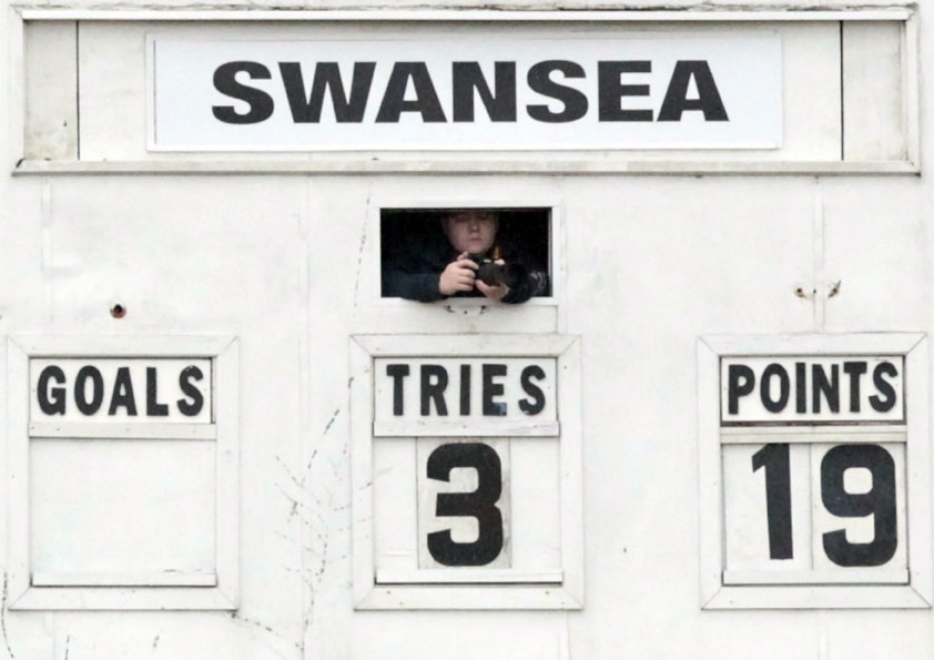 A long pass out wide by scrum half Chris Williams found winger Aaron Grabham and he probed the Swansea defence, but after switching play to the other wing, Cai Evans threw a wild pass into touch. The referee’s attention was drawn to a fight that broke out off the ball between locks Matt Dodd and Shaun O’Rourke, with both men shown a red card.