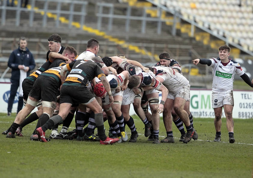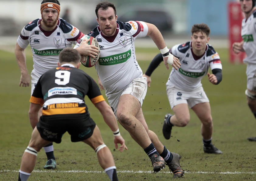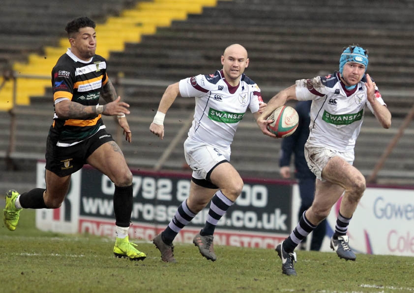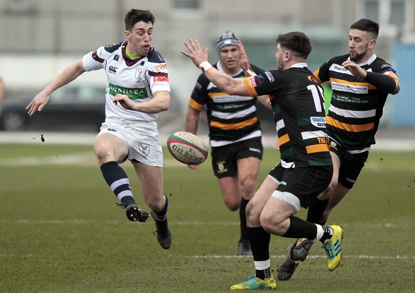 The visitors’ first attack came from an infringement in the Swansea lineout, but winger Jay Baker’s chip through was dealt with by full back Phil Jones, who cleared to touch.