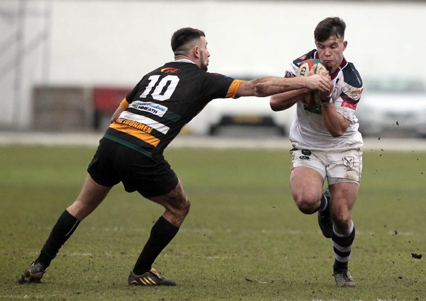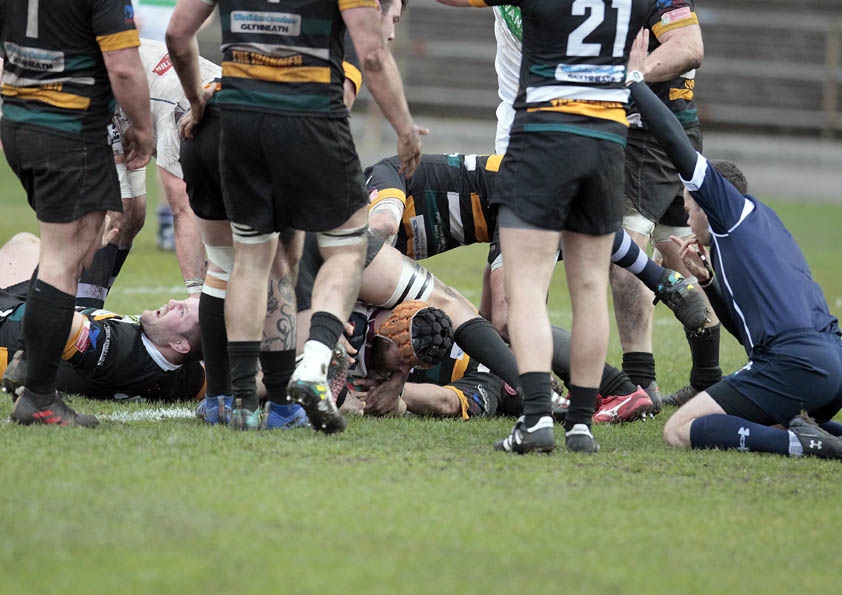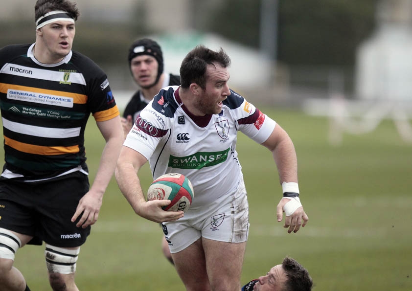 A quick tap penalty by centre Callum Carson near his own line went horribly wrong as he spilled the ball forward. But an outstanding tackle by prop Greg Cunniffe forced Merthyr off the ball, allowing Phil Jones to clear.