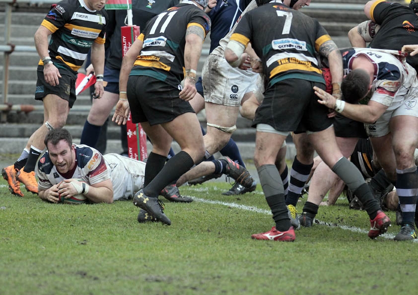 Disaster struck for Merthyr when replacement fly half Gareth Davies, with his first touch since coming on as a replacement, threw a loose pass that was scooped up by Claypole, who raced clear to score. Phil Jones missed the conversion.