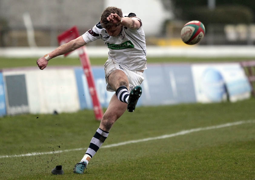 A slow moving roiling maul from the lineout meant the visitors were forced to spread the ball wide, but winger Tom James held on after the tackle surrendering possession.