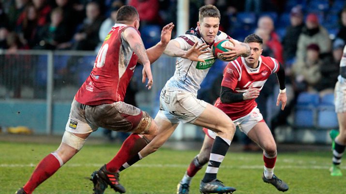 Swansea secured a bonus point when Will Griffiths charged down a chip through and winger Ryan Griffiths raced over halfway. He found replacement winger Gareth Rees, who sprinted into the twenty-two and threw a short pass to send Aubrey over for a try. J Rhys Williams converted.