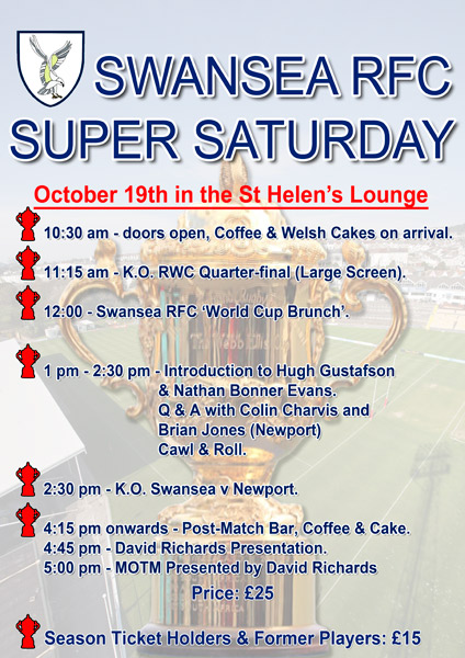 Be at St Helen’s as the Rugby World Cup enters the Quarter-final stage. Enjoy a warm welcome and a great day of rugby on the screen and on the pitch. The Bar will be open from 10:00 am Saturday and we’ll be serving baguettes from the ‘hatch’.