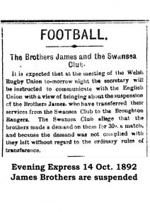 [12] ‘The Brothers James and the Swansea Club’, Evening Express, 14 October 1892, p.3