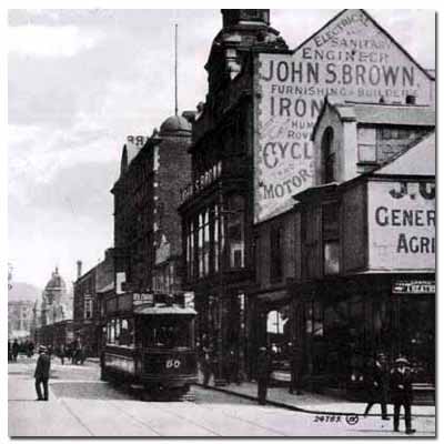 | John S Brown Ironmongers sign is still visible in Swansea city centre today at 21 Oxford Street.