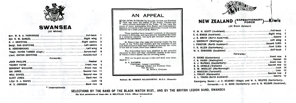 SWANSEA 6 KIWIS 22 (at St Helen’s, 27th October, 1945)