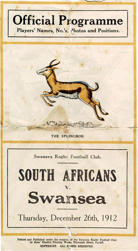 Above: A rare Match Programme from the Swansea v South Africa match (Club Archive)