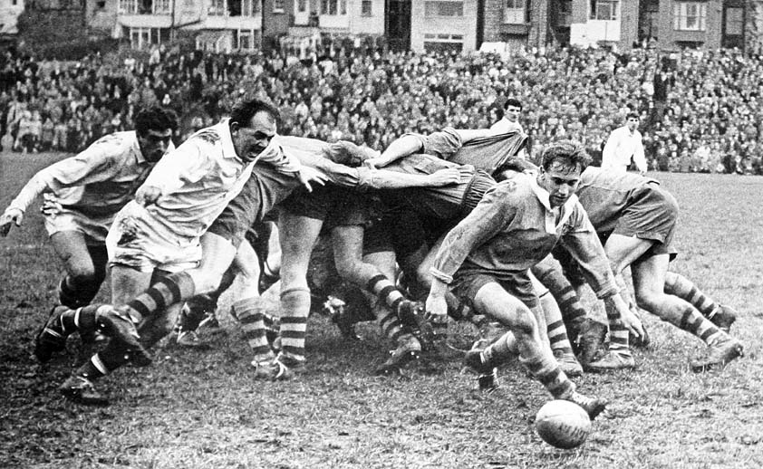 Above: Ken Catchpole about to pass to Alan Cardy (No4).