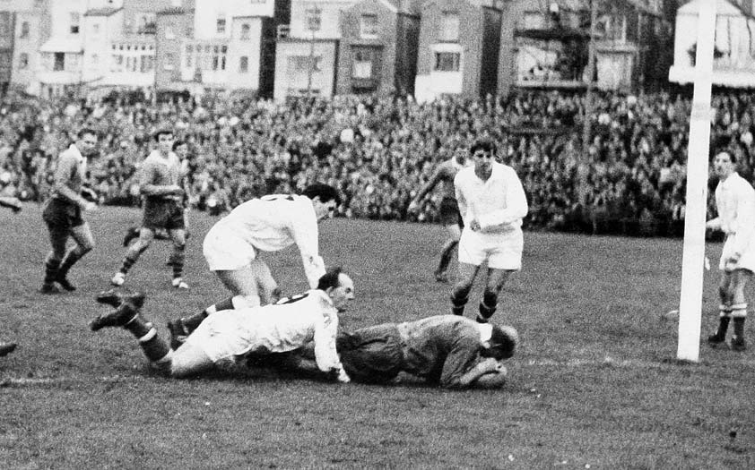 Above: Greg Davis scores for Australia although tackled by Clive Rowlands.