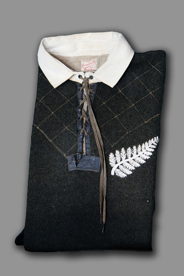 (Above) An All Blacks Jersey from Wales v New Zealand at St Helens on 29th November 1924. The All Blacks, “Invincible” on this tour, won 19 – 0. Presented to Swansea RFC by Rowe Harding who played in the match. (Club Archive).