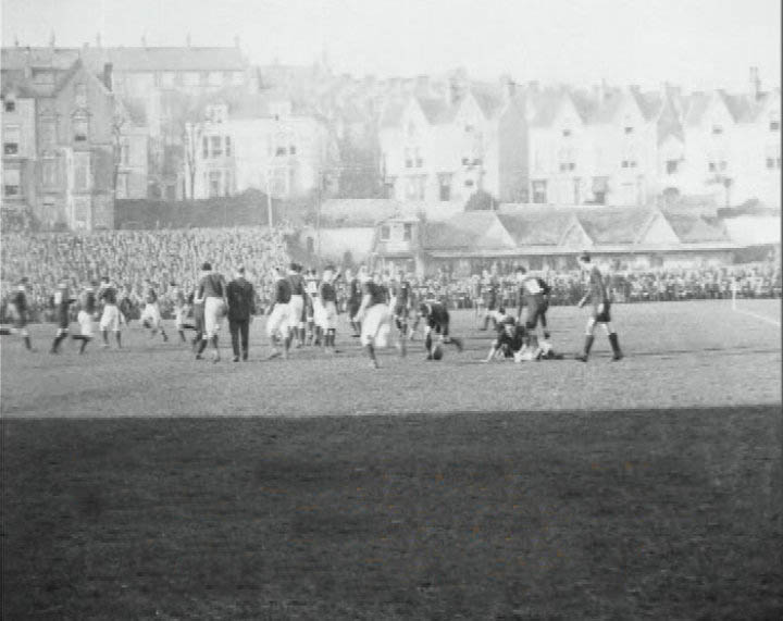 Following the earlier victory over Swansea at the St Helens ground (27th sept 1924), the second All Blacks secured a comprehensive victory over Wales on the same ground on 29th November 1924. This was New Zealand’s “Invincible” tour and the previous defeat to Wales on the “Originals” tour of 1905 was avenged in a one sided match where the All Blacks scored 4 tries, 2 coversions and a penalty on the way to a 19 – 0 win where the great George Nepia at full back, had a superb game. Dai Parker and Rowe Harding represented Swansea in the Welsh team. In this film clip you can also see a balcony full of supporters collapsing as the 50,000 crowd seek every vantage point.