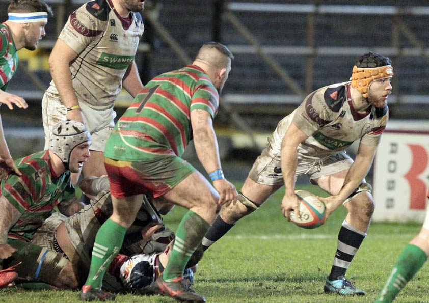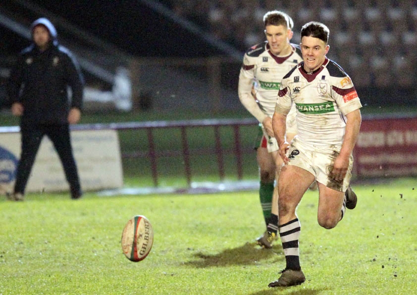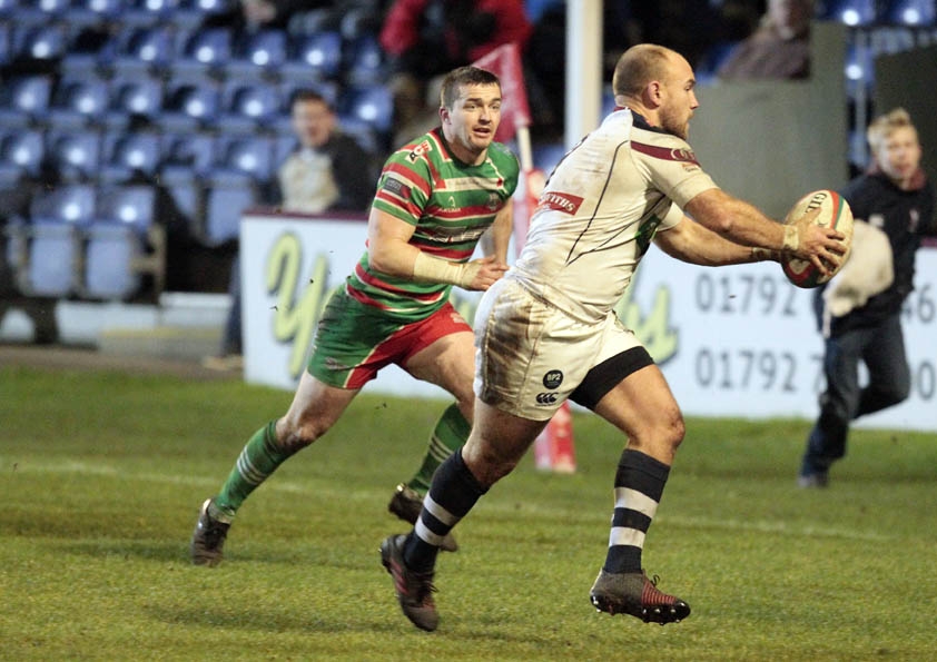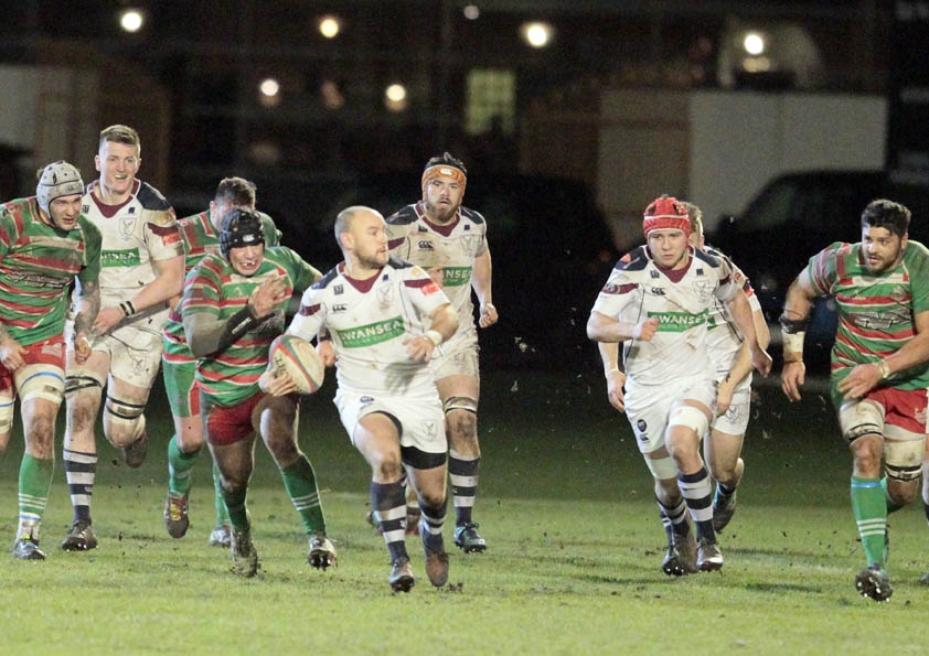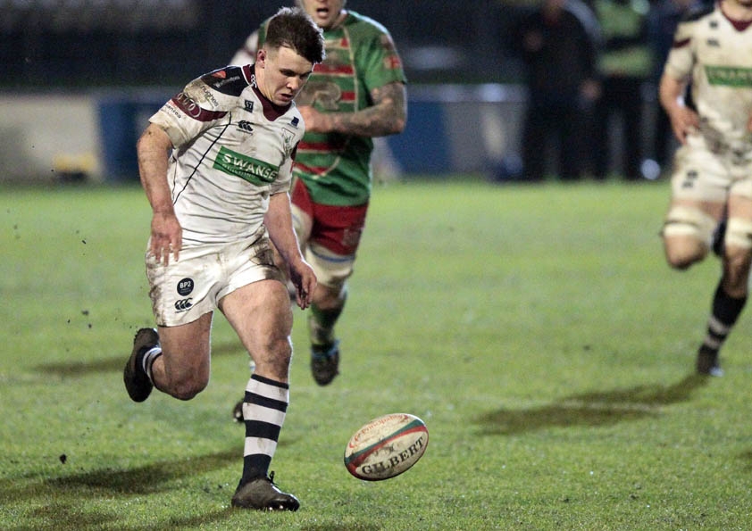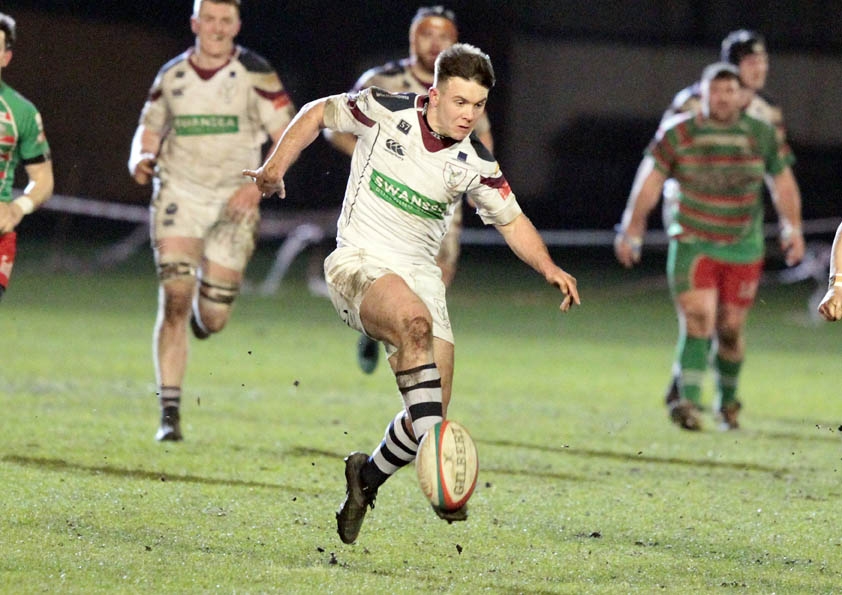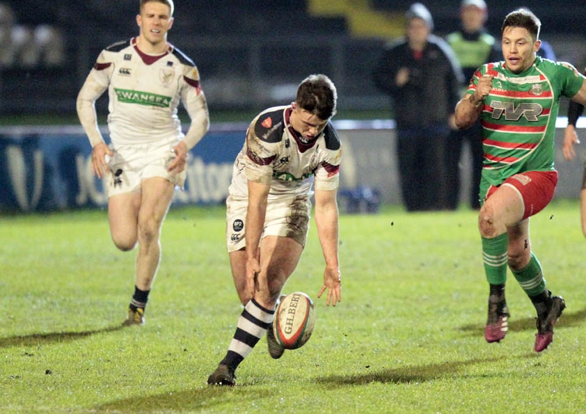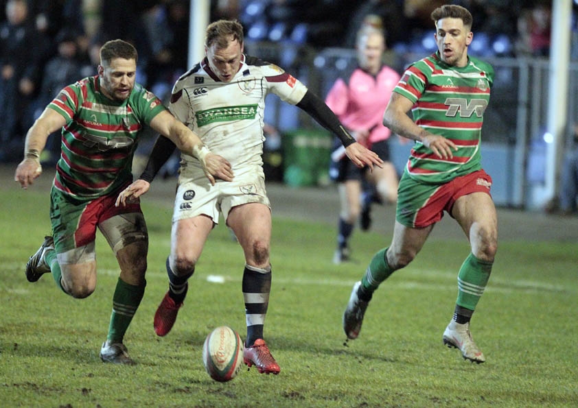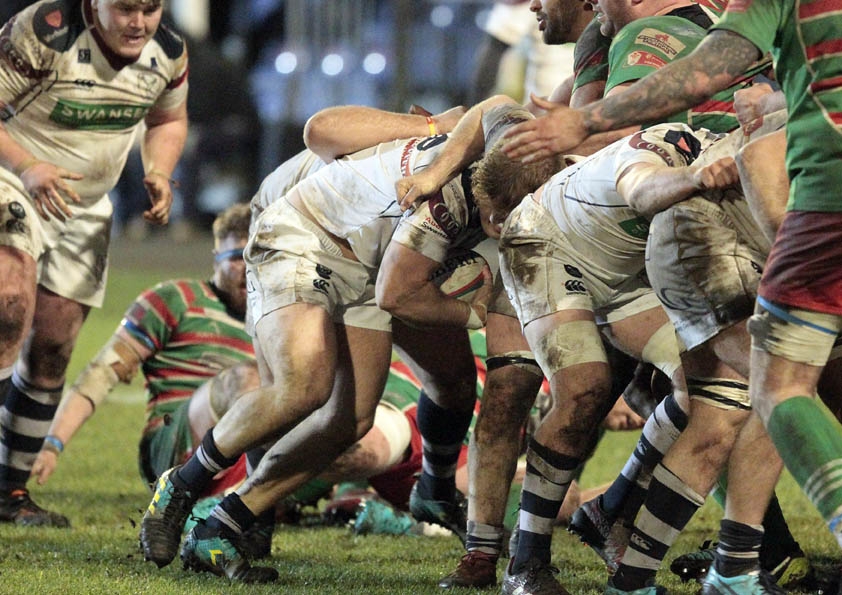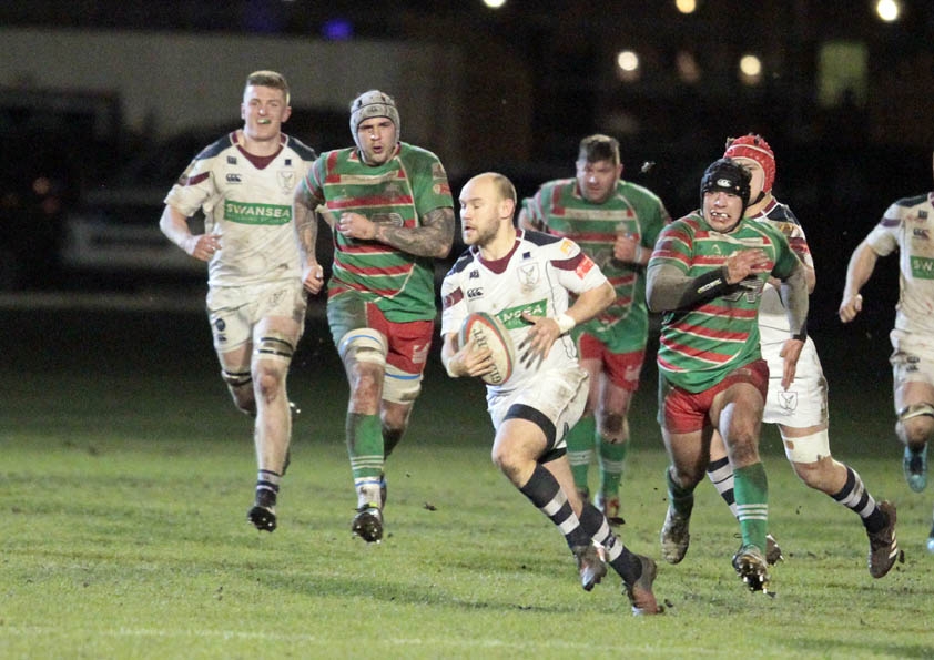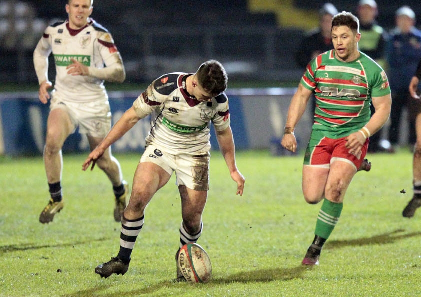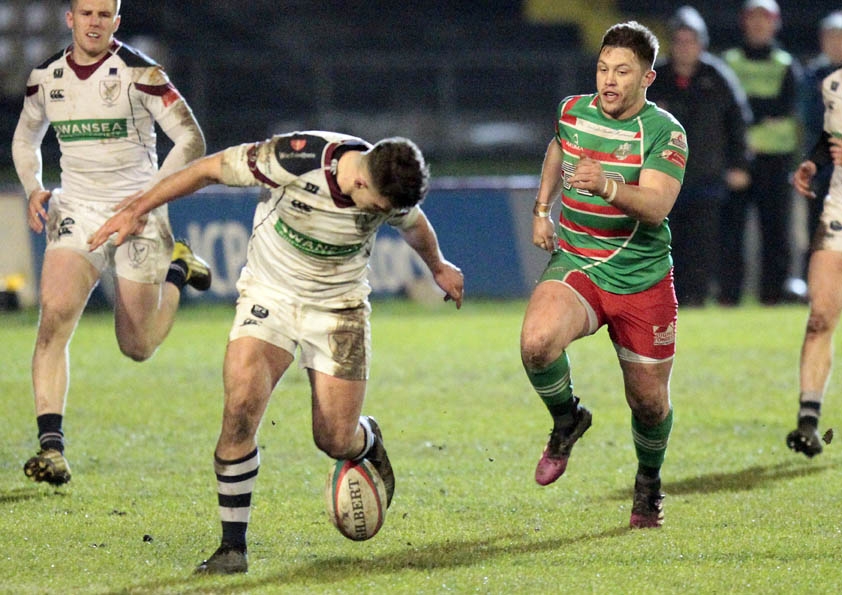 Steffen Williams again chipped to the corner and prop Tom Sloane was held up just short of the line. The move lost some momentum when Swansea spread play out wide and a fumble brought an end to the attack and fly half Rhys Jones was able to clear.