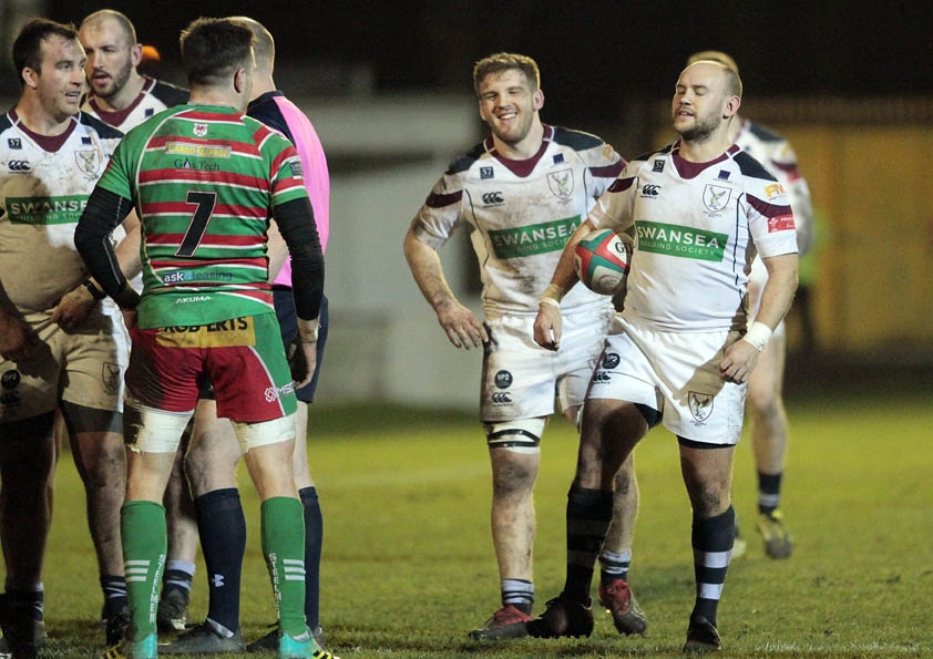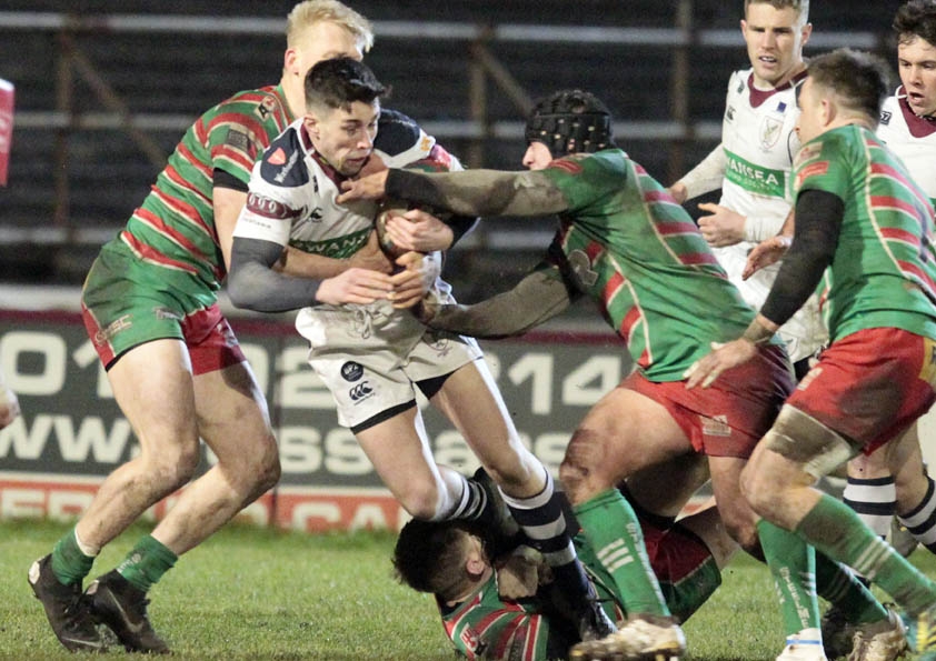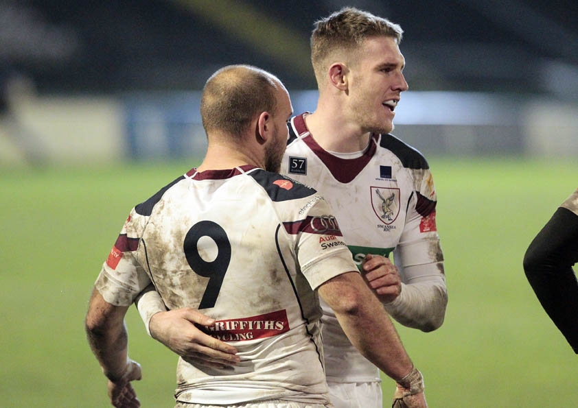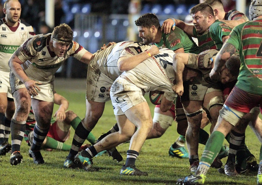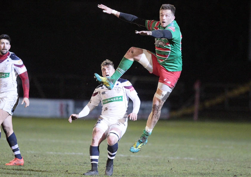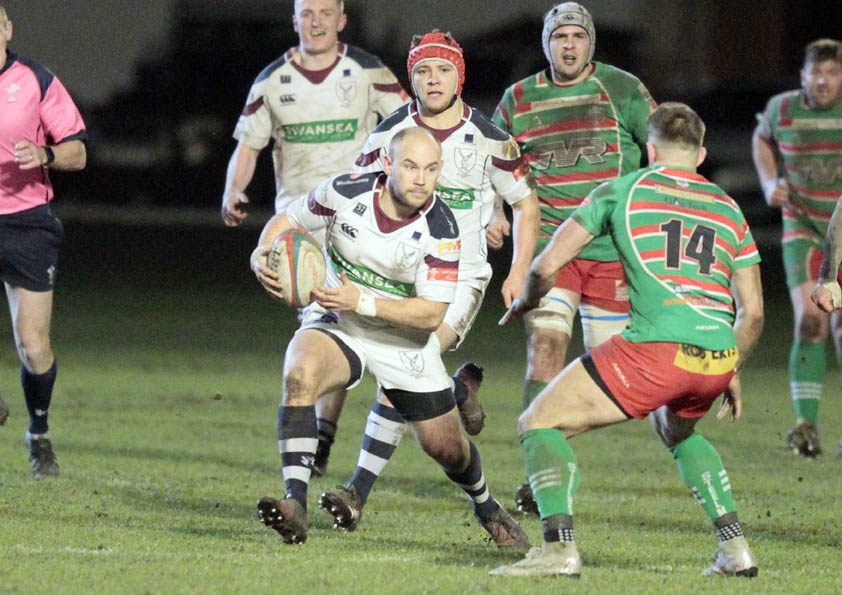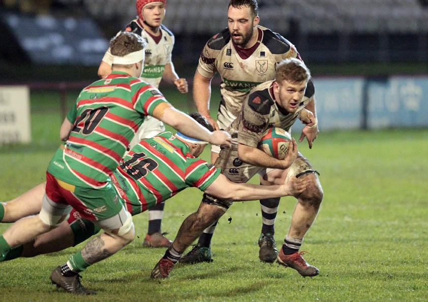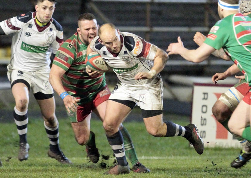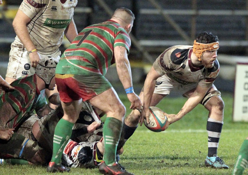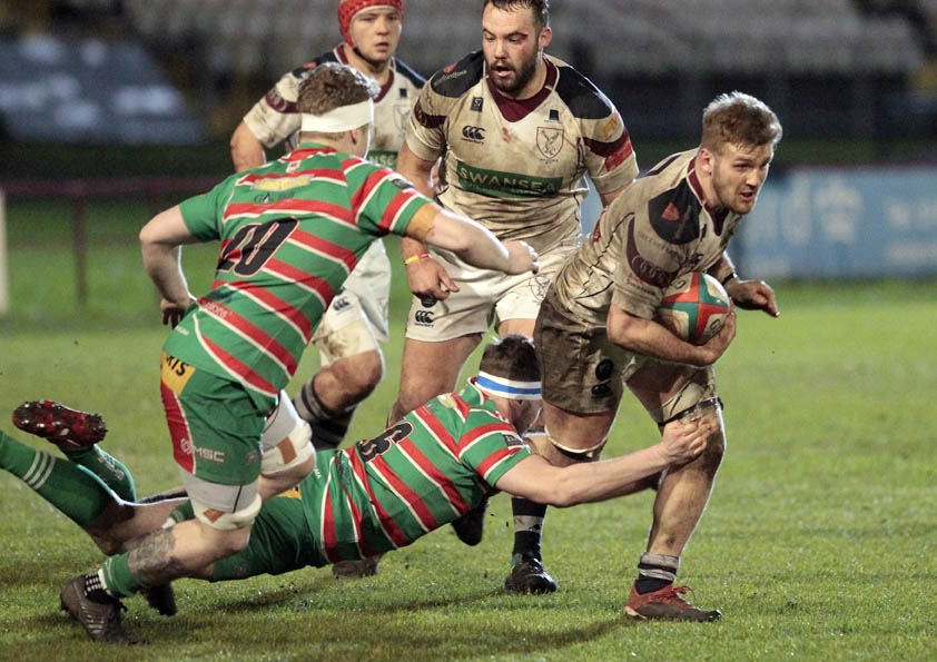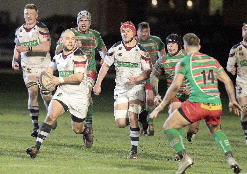 Steffen Williams again chipped to the corner and prop Tom Sloane was held up just short of the line. The move lost some momentum when Swansea spread play out wide and a fumble brought an end to the attack and fly half Rhys Jones was able to clear.