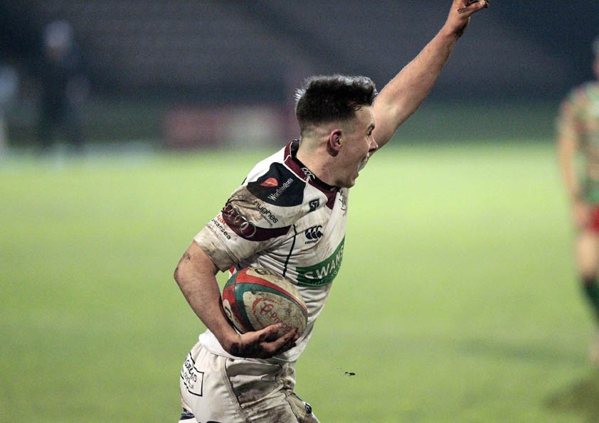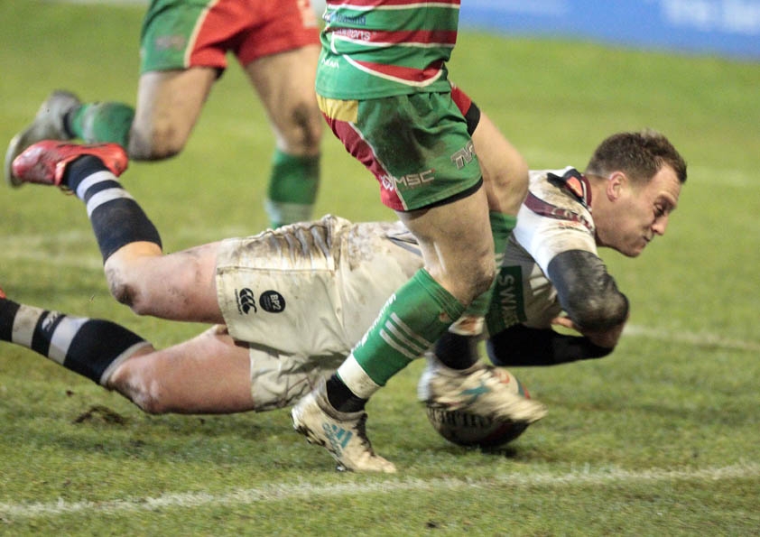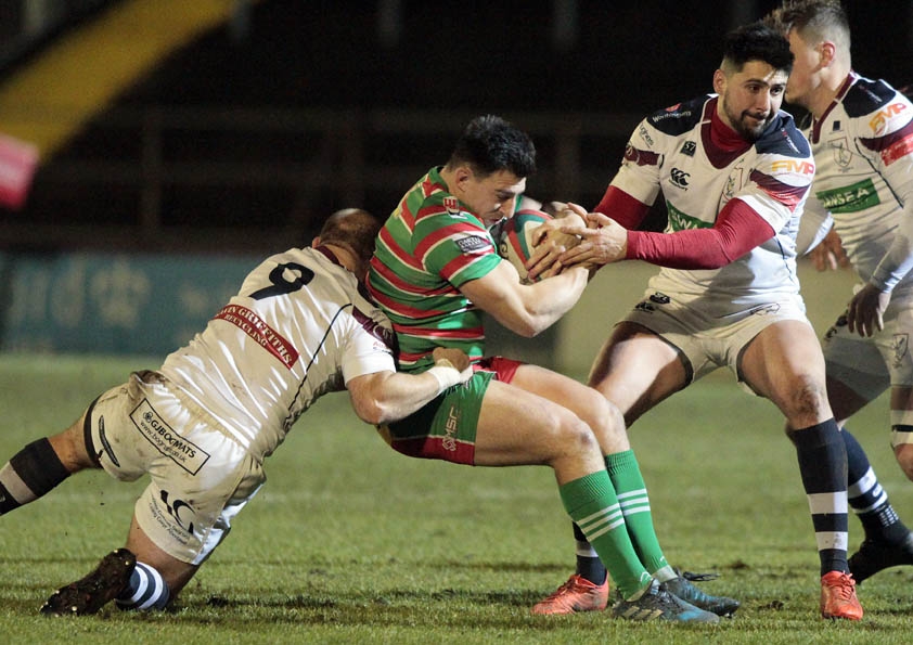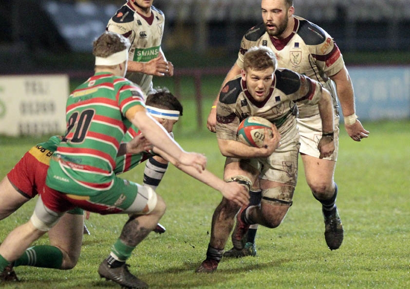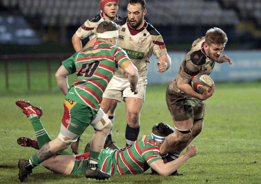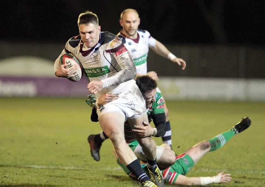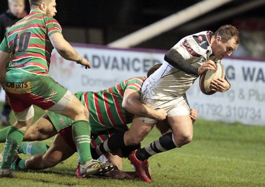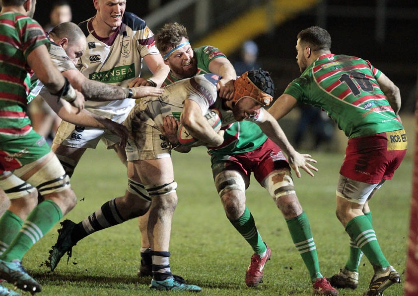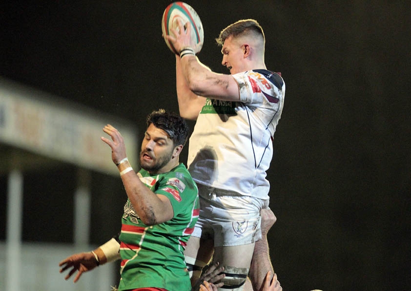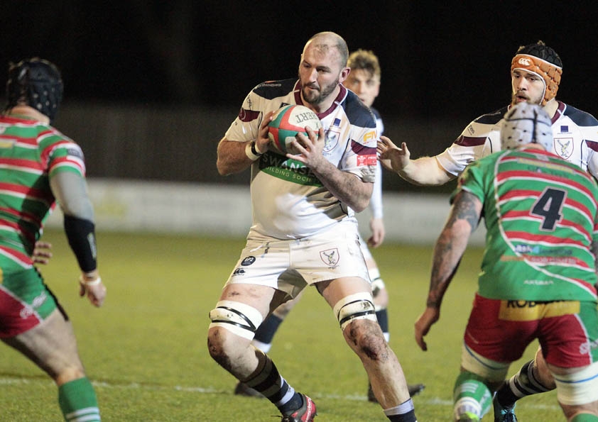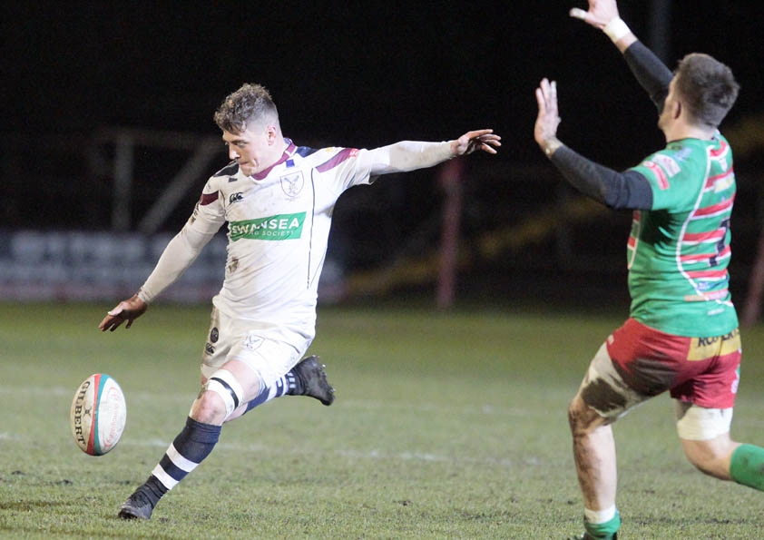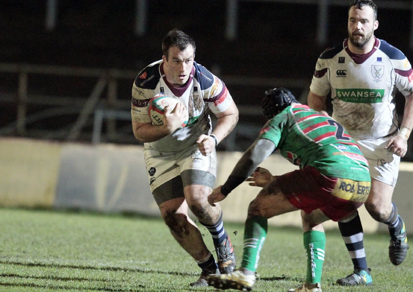 Steffen Williams again chipped to the corner and prop Tom Sloane was held up just short of the line. The move lost some momentum when Swansea spread play out wide and a fumble brought an end to the attack and fly half Rhys Jones was able to clear.
