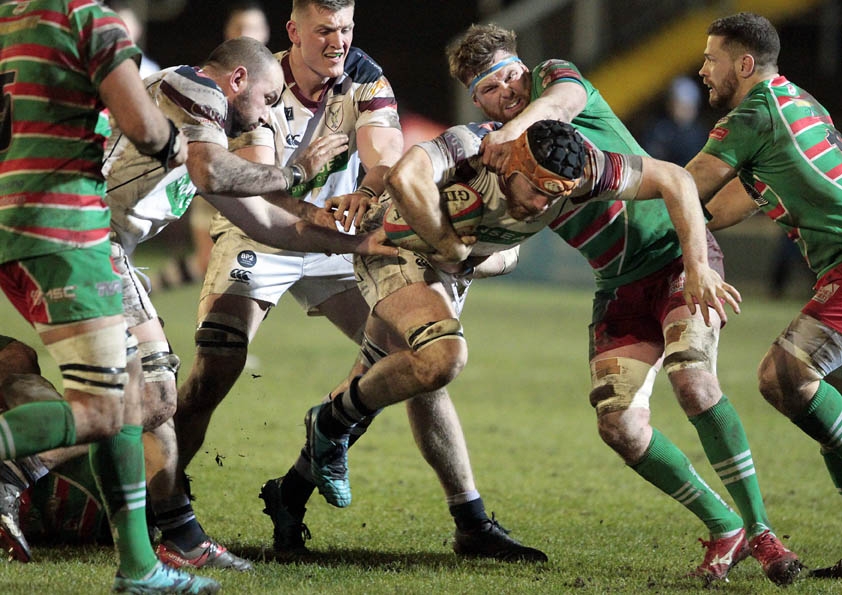 A powerful scrum by the visitors’ pack earned a penalty and Rhys Jones kicked to the corner. Thomas was held up a metre short of the line, before lock Rhys Clarke knocked on over the line and an overzealous Ebbw scrum gave away a penalty.