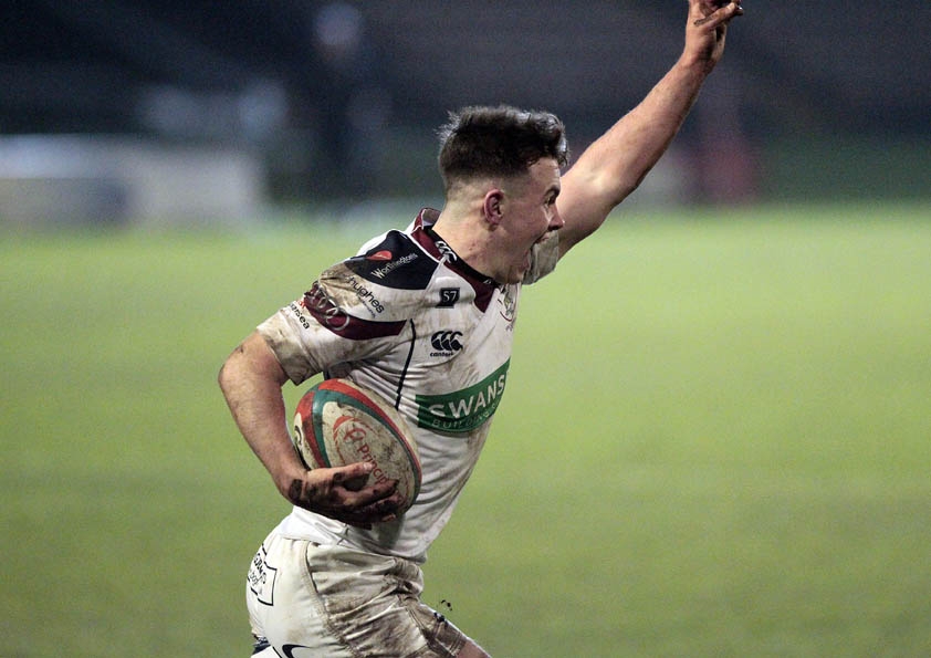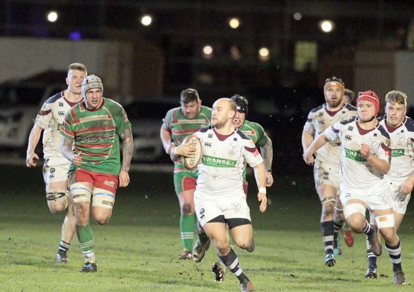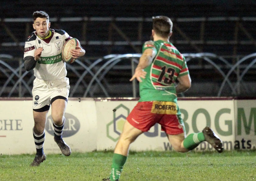 With only their second foray into Swansea territory it was the visitors who struck first when centre Paul King powered over half way and quick ball out wide saw Thomas sprint clear of the chasing R Rhys Williams to score the opening try. Rhys Jones converted.